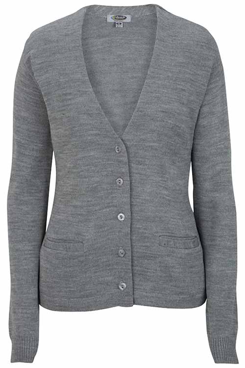 Stylish Ladies’ V-Neck Cardigan is made with Tuff-PilĀ® Plus acrylic yarns for lo-pil performance.